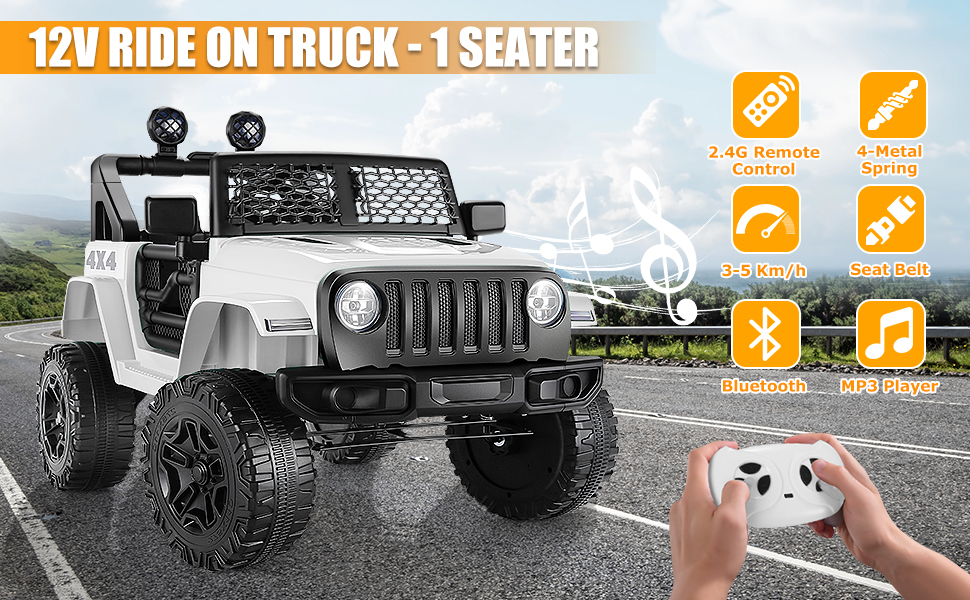 Funcid 12V 7AH Kids Powered Ride on Truck Car with Parent Remote Control