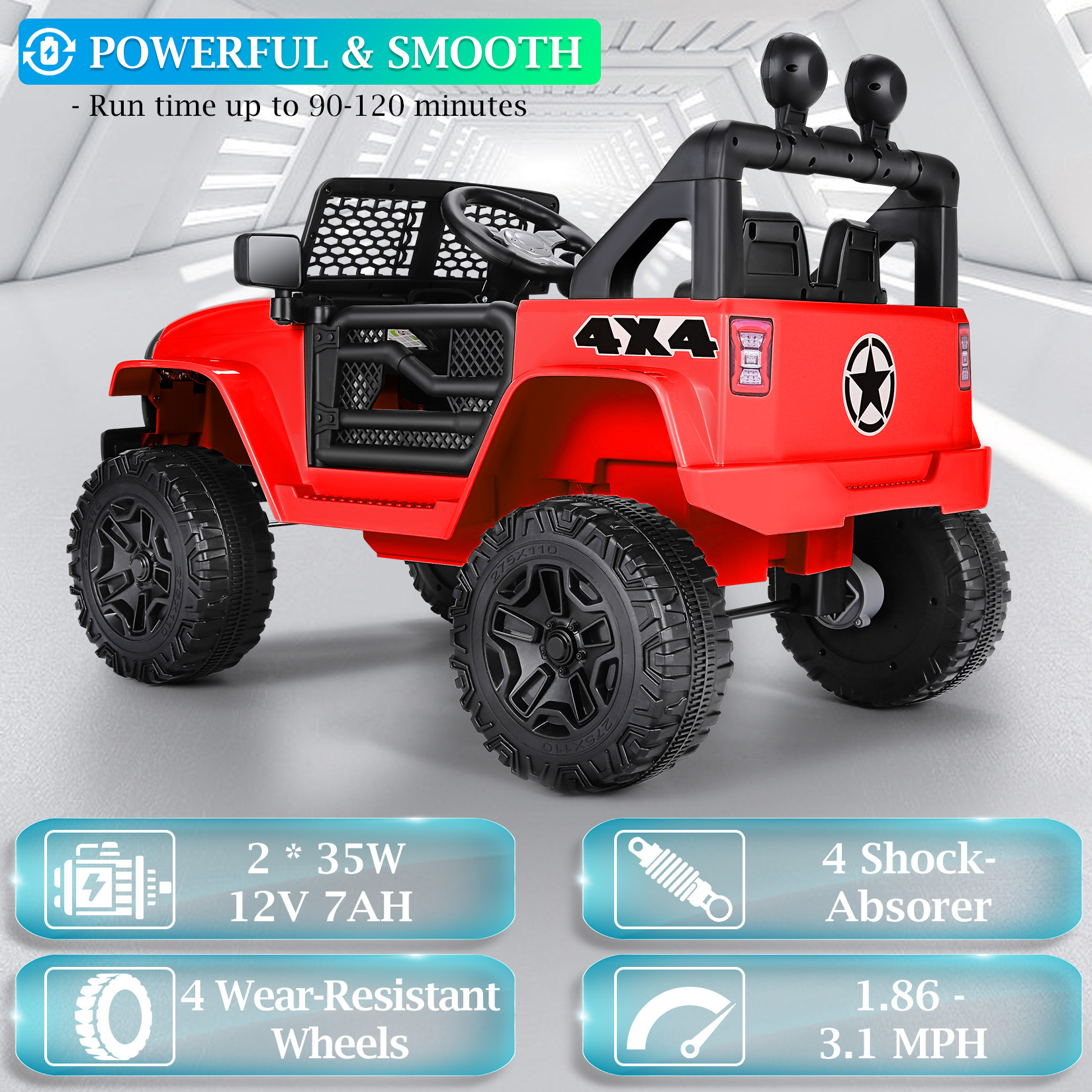 Run Time: 2-2.5 hours (depending on the child's weight and speed)
