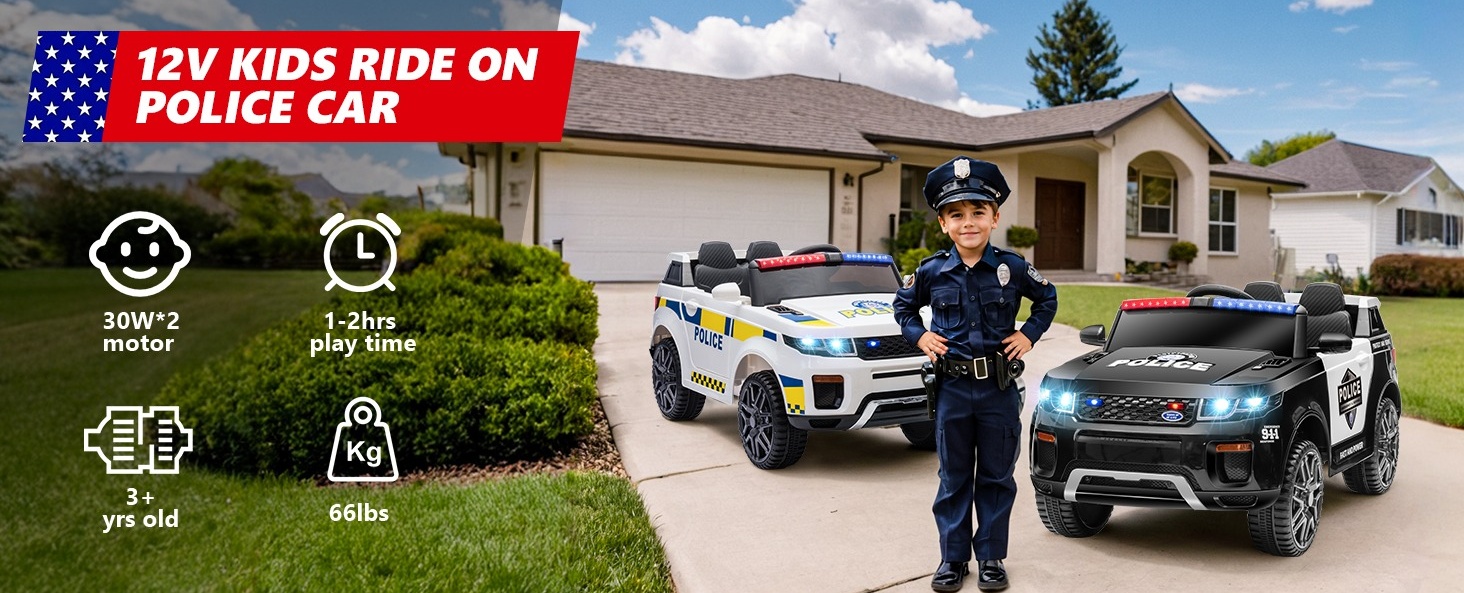 Funcid 12v Ride on Police Car Powered 2 Wheel Drive