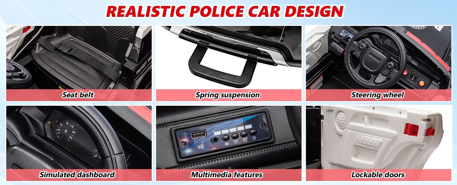 Portable Design: Designed with a handle and easy-to-drag rear wheels, parents can conveniently move the 12V ride on police car when needed, making setup and storage a breeze during playtime.