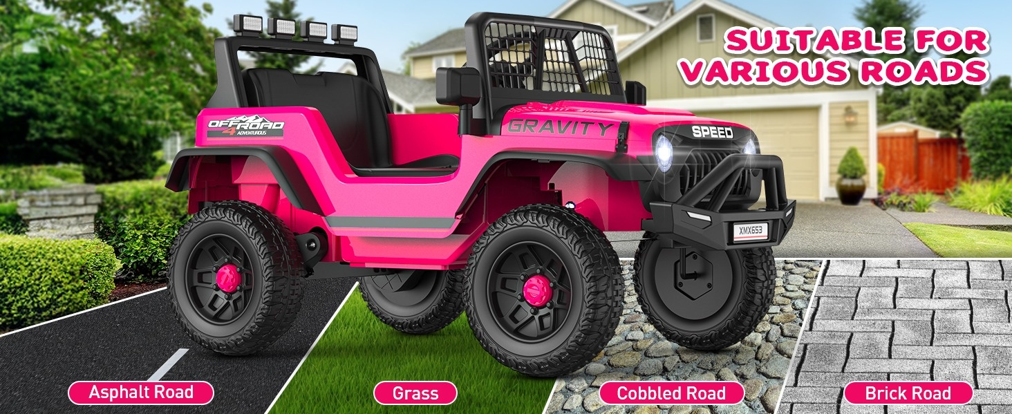 🚗Ensure children's safe driving Equipped with spring suspension, the electric ride-on toy car can remain stable when driving on various roads, ensuring that children enjoy a safe and smooth driving experience. It is also equipped with a reliable seat belt so that children can sit safely in the seat. This fully functional children's electric toy car allows you to enjoy a safe and fun driving experience at any time of the day.