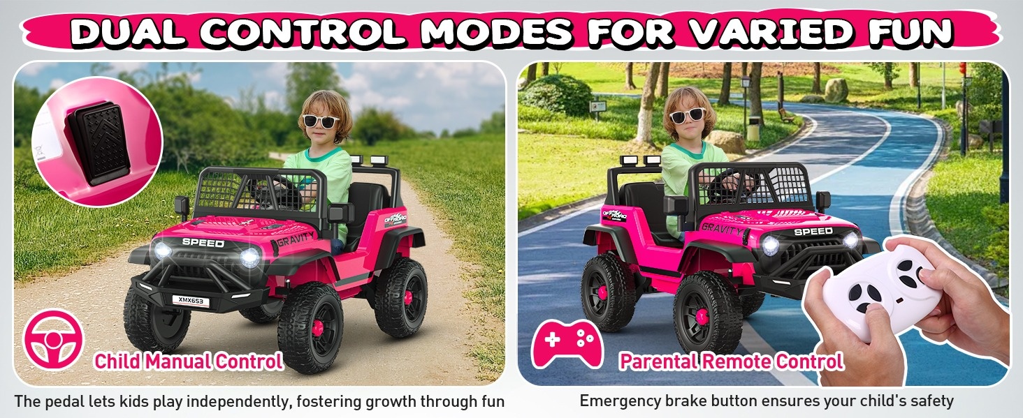 🚗Parental remote control and independent driving This electric ride-on car can be driven by parents or independently. Parents can drive remotely to bring wonderful personal interaction, and can also control the direction and speed to ensure the safety of children. Children can experience the fun of independent driving by driving electric toy cars independently.