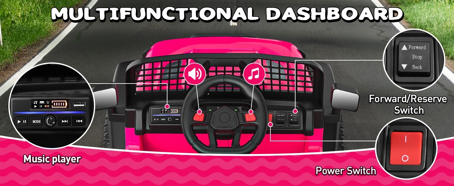 🚗Rich multimedia functions Built-in music and stories, and can also connect to Bluetooth, children can enjoy their favorite music and stories on the ride-on toy car. The volume can be adjusted and can be used indoors and outdoors. Let every journey be spent in a pleasant atmosphere.
